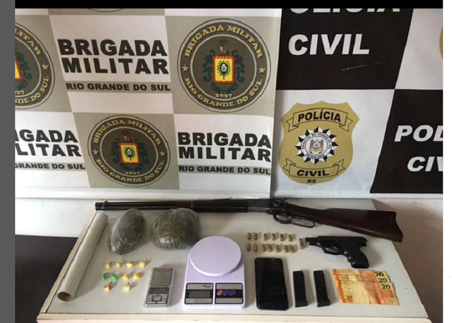 Nas buscas foram localizadas duas armas de fogo, munições, drogas (Skank e cocaína), além de um smartphone e dinheiro em espécie. Diante dos fatos, o material e as drogas foram apreendidas e dois indivíduos presos e encaminhados até a Delegacia de Polícia Civil para a lavratura da documentação pertinente.