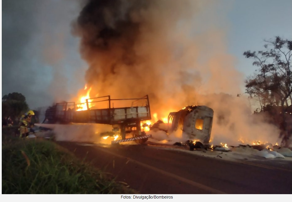 Dois caminhões que trafegavam pela RS 168 na tarde desta quarta-feira dia 2, no trecho entre São Luiz Gonzaga e Roque Gonzales, nas proximidades da curva dos Eucalyptus, colidiram frontalmente e foram consumidos pelo fogo.