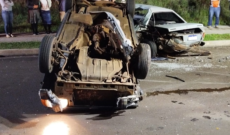 Um dos carros capotou após a batida