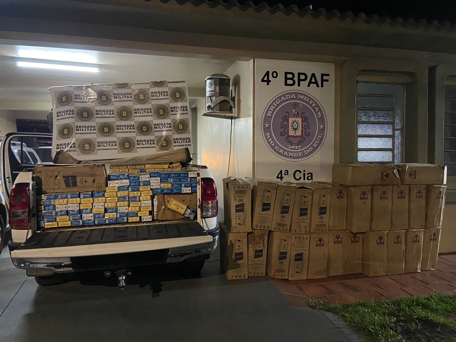 O veículo era conduzido por um homem de nacionalidade Argentina. No veículo eram transportados 950 pacotes de cigarro marca Classic e 849 pacotes de cigarro marca Hudson totalizando 17.990 maços de cigarros.