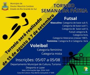 Torneio Semana Da Pátria 2022 abre inscrições de equipes em Doutor Mauricio Cardoso