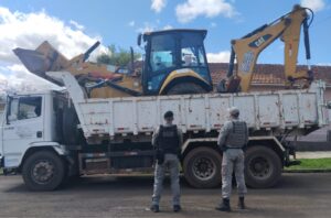 Ação da Brigada Militar e Polícia Civil recupera caminhão e escavadeira roubados em Dr. Maurício Cardoso