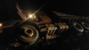Carreta carregada com grãos tomba na BR 472 entre Três de Maio e Boa Vista do Buricá
